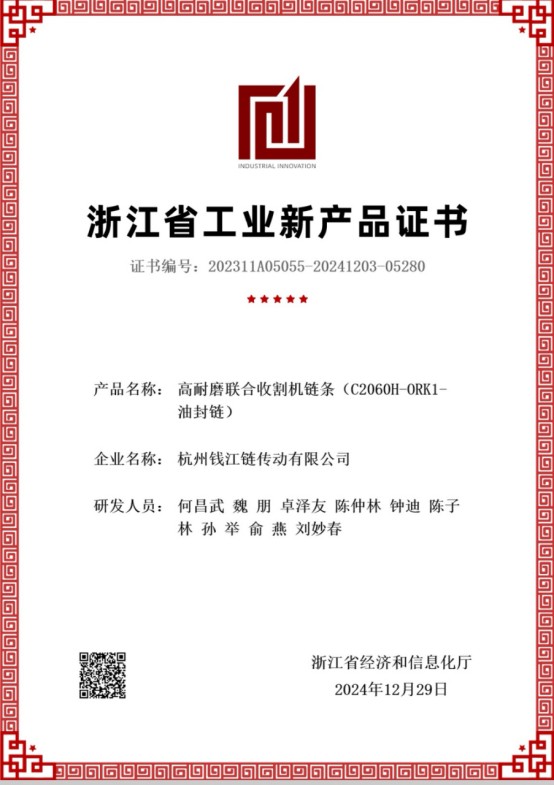 در سال 1991، این شرکت با موسسه تحقیقاتی درایو زنجیره ای دانشگاه جیلین برای توسعه و تولید زنجیر با حلقه های O و X-ring همکاری کرد که در سال 2001 "جایزه ویژه محصولات جدید عالی در صنعت زنجیره چین" را دریافت کرد. این شرکت دارای انباشت طولانی مدت در زمینه فنی زنجیره های روغنی مهر و موم شده است.