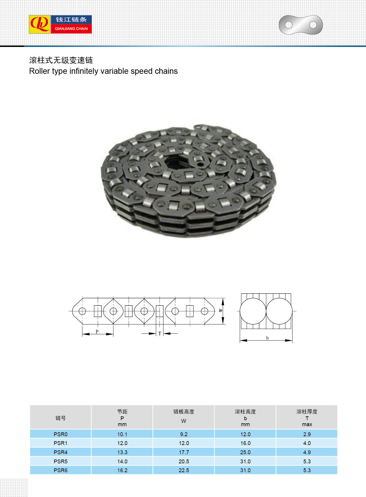 زنجیر سرعت متغیر PSR بی نهایت با نوع غلتکی
